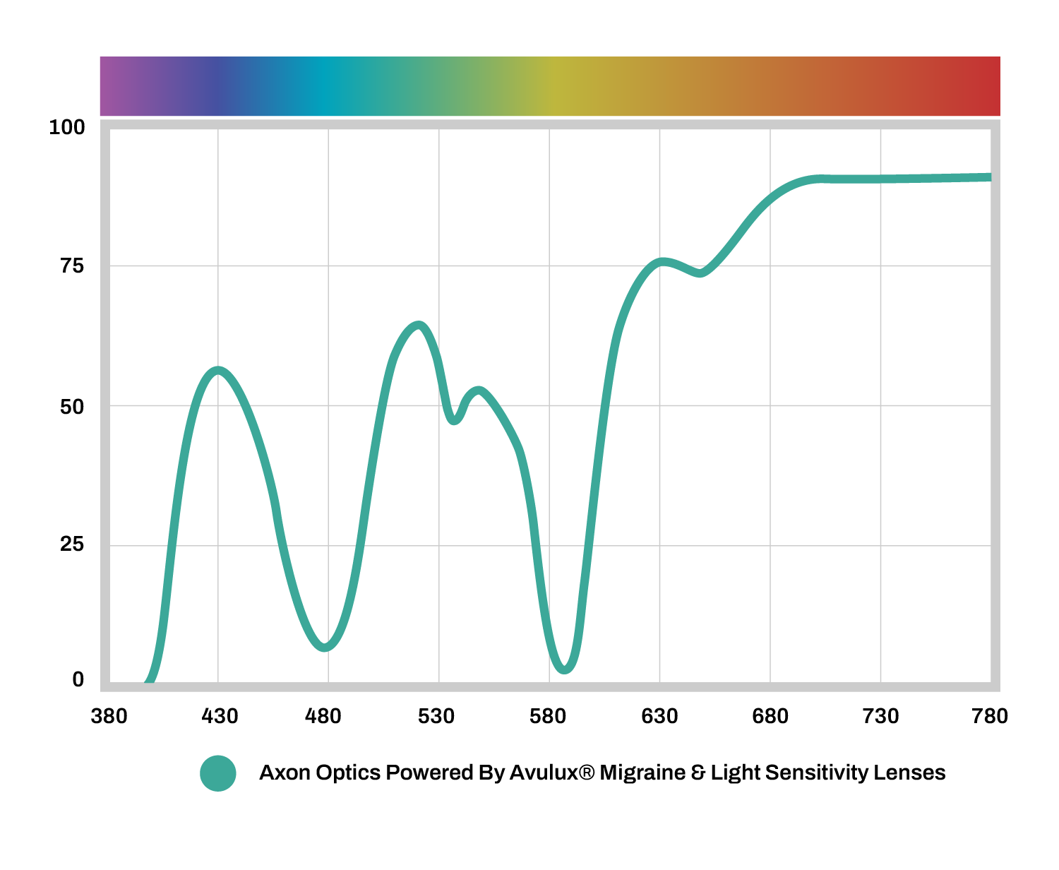 However, Axon Optics powered by Avulux® Migraine & Light Sensitivity Lenses are engineered specifically to absorb blue, amber and red wavelengths of light while letting in soothing green light. Wearing Axon Optics, as part of a healthy lifestyle, may help those living with migraine and light sensitivity.